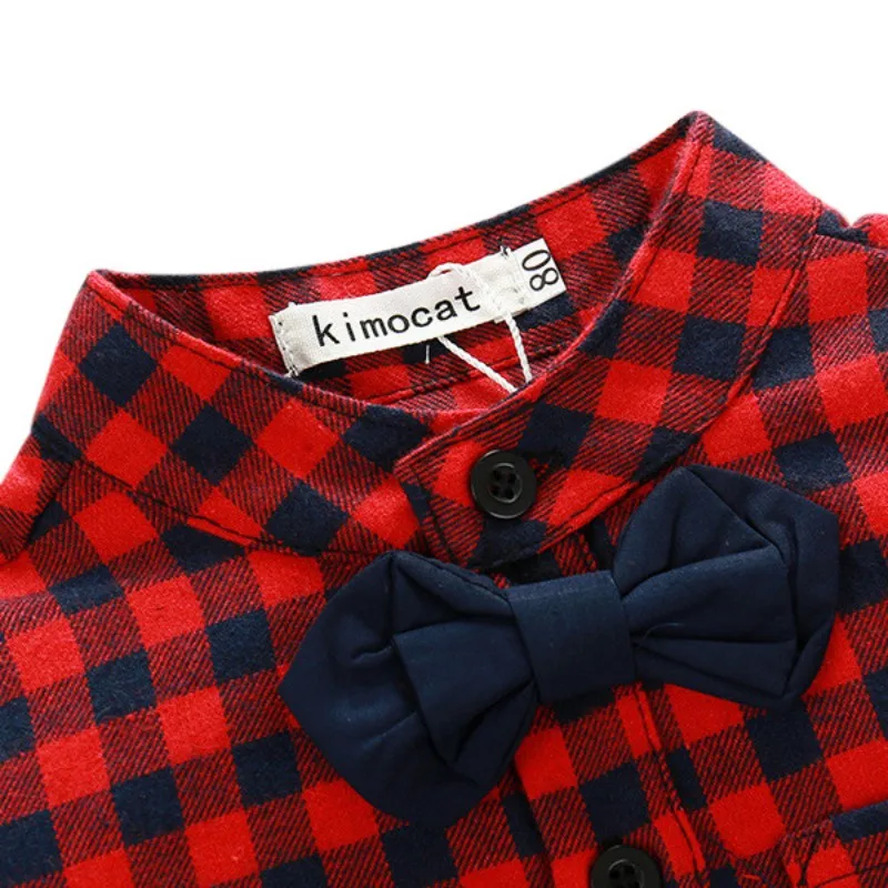 Best Price of Baby Boys Gentleman Plaid Rompers + Jeans Pantsborns Children's Clothing Set Overalls Outfits