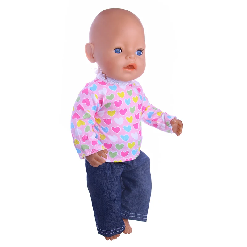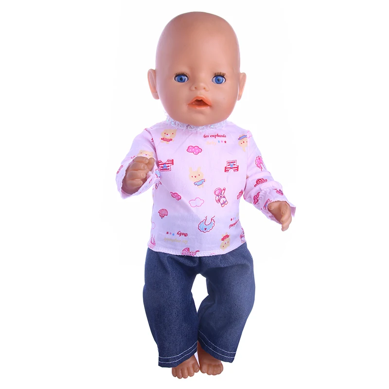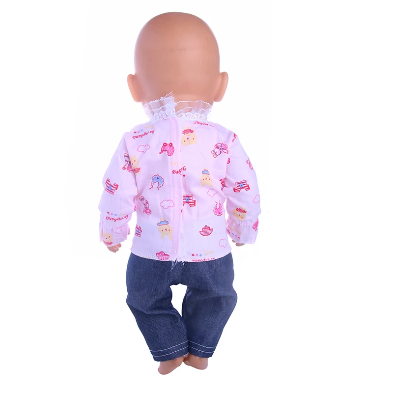 Limited Price for Children's doll clothes cartoon pattern + jeans suitable for 43cm baby dolls and 18-inch American f