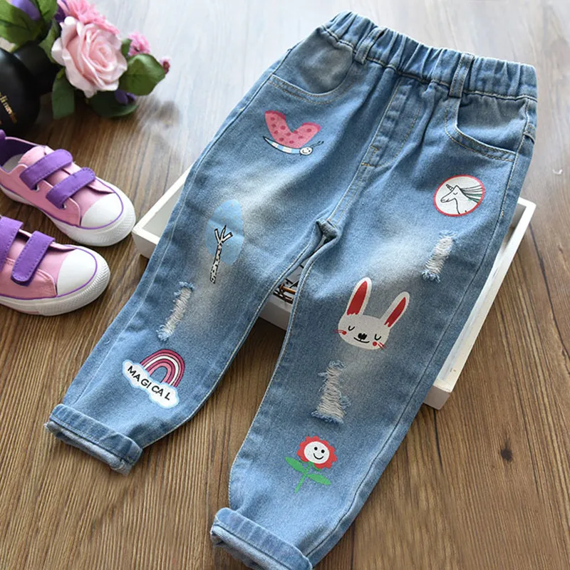 0 Response to " DFXD Kids Girl Jeans 2019 Spring Baby Long Casual Straight Cartton Rabbit Ripped Denim Trousers Tod"