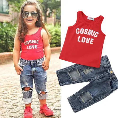 Buy Summer Fashion Toddler Kid Baby Girl Letter Print Red Sleeveless Vest Tops+Denim Ripped Pants Jeans Right Here and Right Now Just for USD US $4.62, Price will be rise up at any time without notification and I cant guaranted that the stock is still available tommorow or next hour. So Please Save It Now!